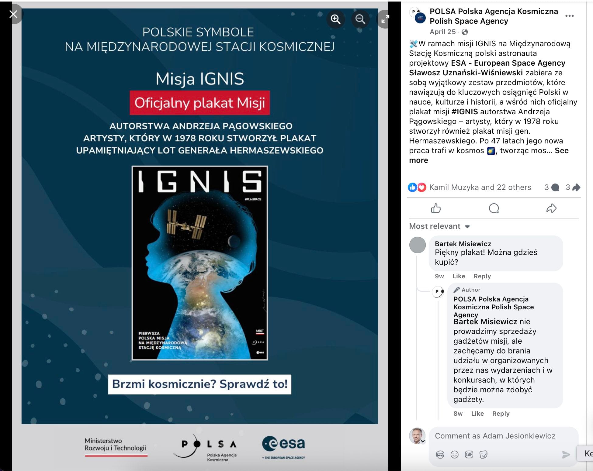 A jakbyście się zastanawiali, czy można kupić oficjalny plakat od POLSA (zaprojektowany przez Andrzeja Pągowskiego), to niestety - ich sytuacja wygląda prawdopodobnie dokładnie tak samo, jak moja w Astrography. Wykosztowali się na znanego plakacistę, zapłacili setki milionów za misję, a nie mają zgody na dystrybucję plakatów. Urocze. Ten screen to gotowy mem.